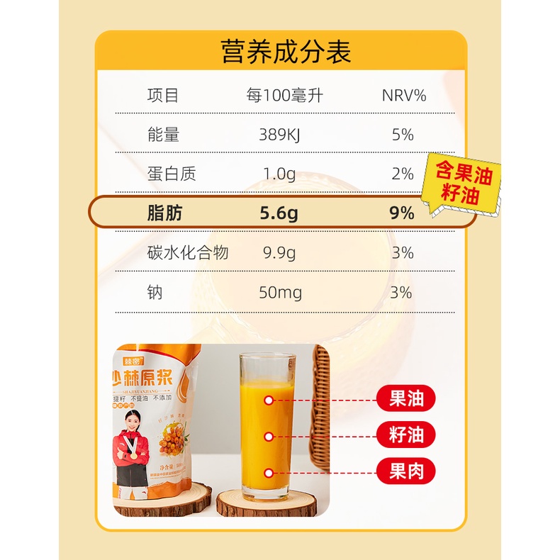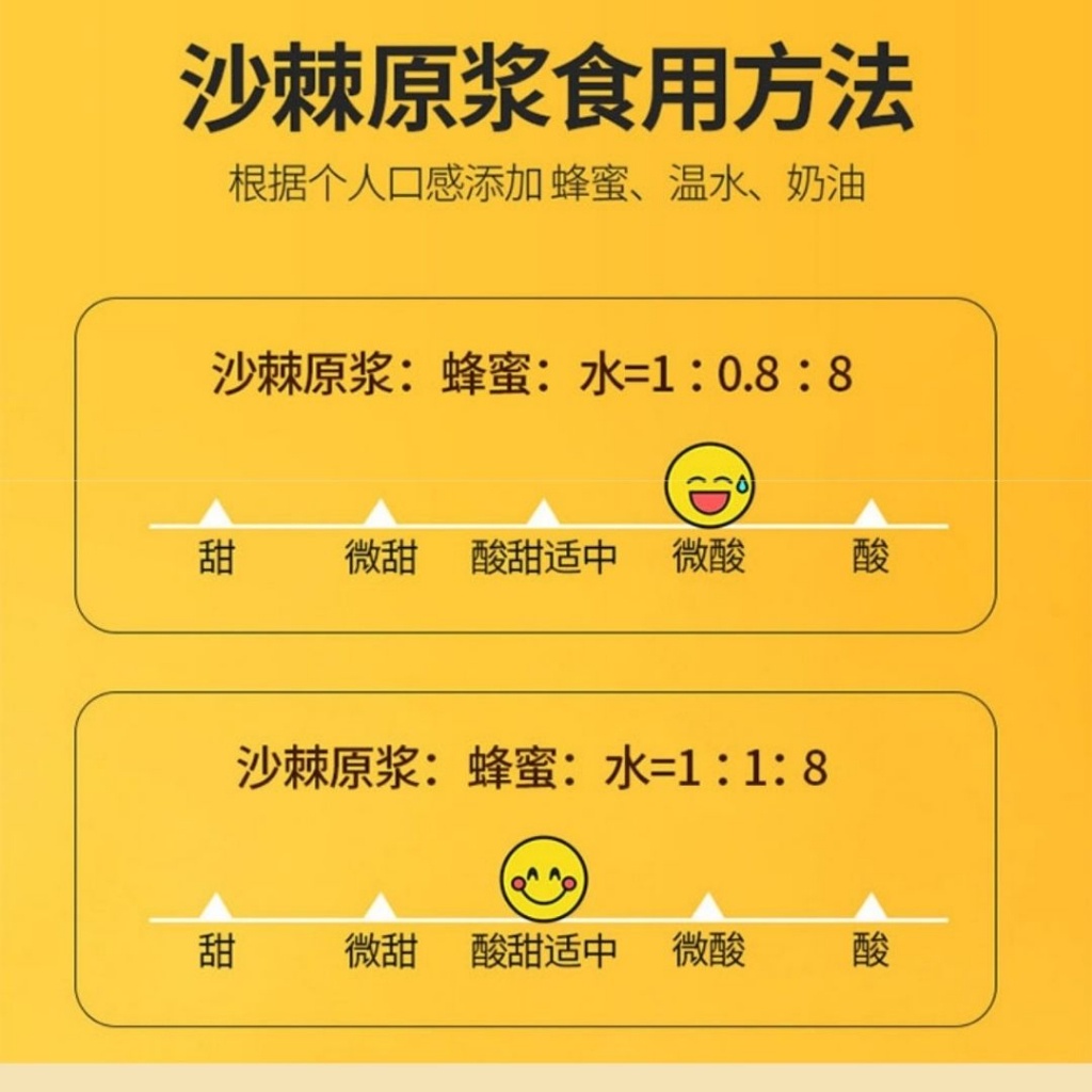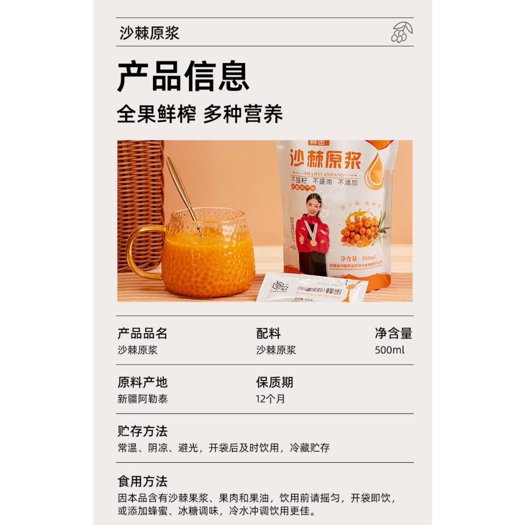 *Pure seabuckthorn juice with no water added 无添加任何水 纯沙棘原浆
